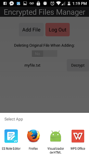 Secure Folder allows you to protect your files avoiding other persons to access its content.They are encrypted with reliable encryption methods that are only accessible from the application. In case your device is lost, the files will be inaccessible because they are only decrypted by the application and it is managed with your hash password.