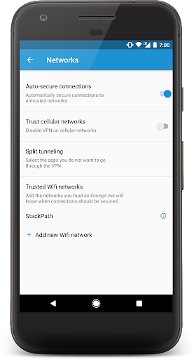 • Encrypt.me knows which networks you trust, and which you don't... and Encrypt.me automatically secures your connection when you use an untrusted network.