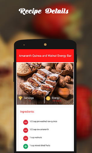 Finally, you can browse on your favorite energy bar recipes anytime because once downloaded on your Android device you don’t need to stay connected to the internet.