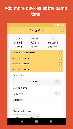 - Add all the devices you want, the app will calculate the total.