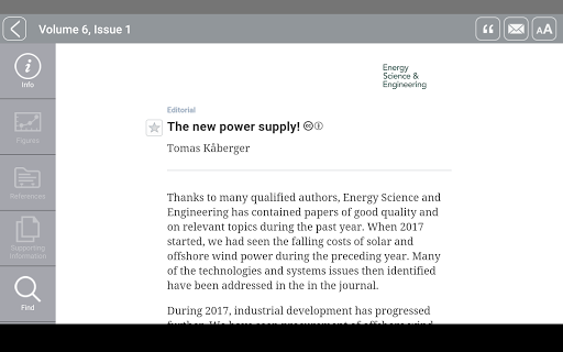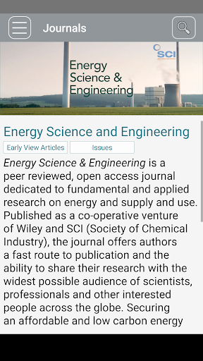 Energy Science and Engineering (ESE) is now available on your mobile device. ESE brings you a stimulating, high-impact mixture of Original Research Articles, Reviews, Perspectives, Modeling and Analysis papers, Spotlights, In the Field articles, On the Map papers, Short Communications and more.