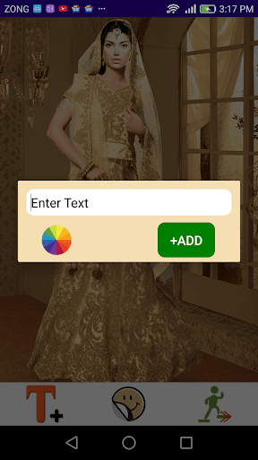 Here you can add any text on your edited picture and paste a sticker, you can choose from a list of stickers.