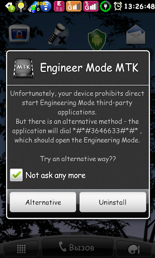Standard, built to cause the engineering menu, you need to dial *#*#3646633#*#* (for example only), which is not very convenient and practical - is a tiny application designed to eliminate this inconvenience :)