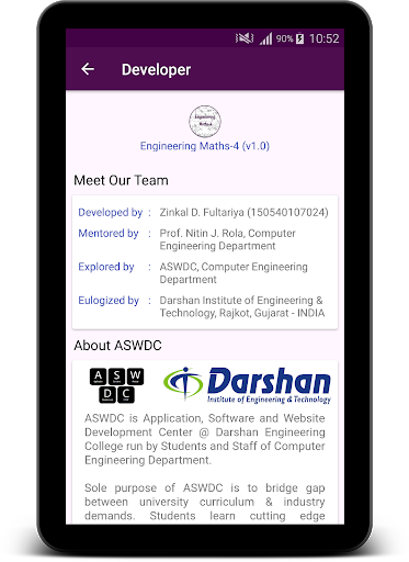 This App is developed at ASWDC by Zinkal Fultariya (150540107024), a 6th Sem CE Student. ASWDC is Apps, Software, and Website Development Center @ Darshan Institute of Engineering & Technology, Rajkot run by Students & Staff of Computer Engineering Department