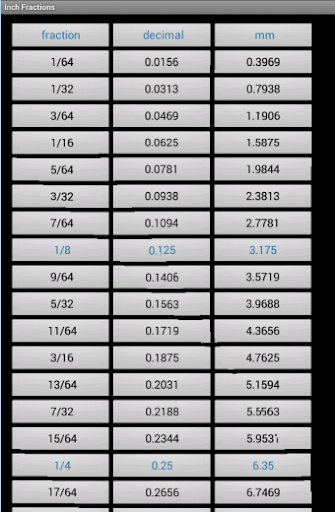 - Gauge conversion for thickness, Inch fractions conversion table