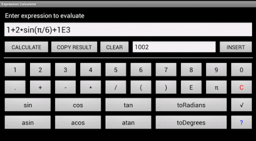 Expression calculator to evaluate simple mathematical and trigonometrical expressions.