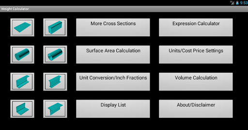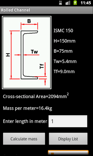 “Engineering Weight Calculator” is a simple application developed to simplify the task of theoretical calculation of mass and cost of standard engineering/structural components such as: