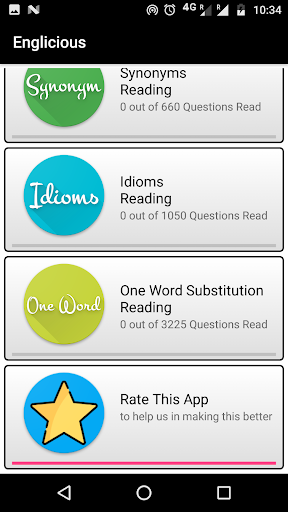 Englicious contains thousands of questions for practicing Synonyms, Antonyms, Idioms, One-word substitution, Complete the sentences type MCQ questions along with 1000s of questions to read in your travel time.