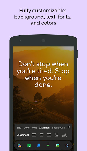 Unique status collection with customizing options easily change the quote text colors, size, and font style with a variety of fonts to choose from and backgrounds from the gallery or camera pictures and choose from millions of free photos from Unsplash and Pixabay.