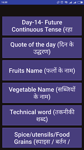 App is classified in 28 days by different lessons on English. It has grammar topics, vocabulary and tests. Enjoy learning day by day with this English sikhe app. This English Bolna sikhe app has the instructions in Hindi so user can learn English easily in 30 day course.