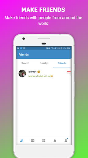 Welcome to Chat to learn English App, where you can have fun and improve your English as you chat online. You can chat in or about the English language, chat in public or chat one-to-one with a friend.
