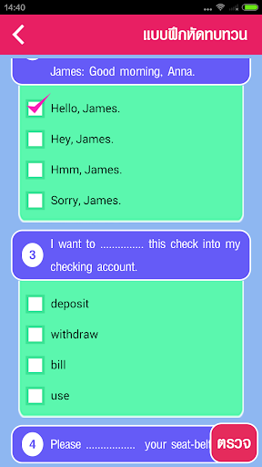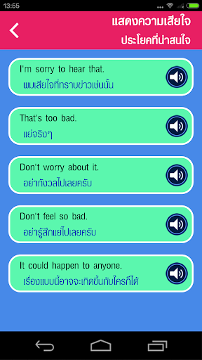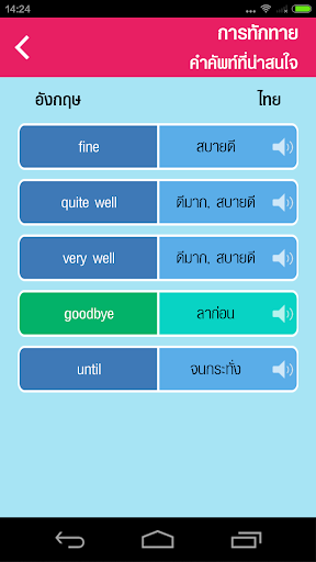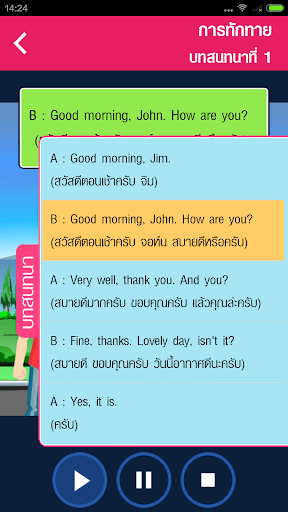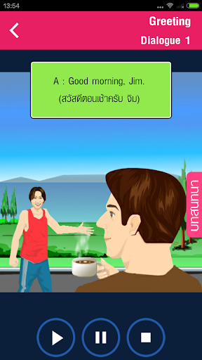 This app will help you to learn English and English conversation effectively by speaking after dialogues provided for various situations in daily life. It is great for students and general people, or those who do not have much time. The app provides conversation dialogues recorded by native speakers, written and spoken Thai translations as well as images to go with the conversation. You can tap on each sentence to listen to it repeatedly. It is easy-to-use and features lots of interesting and useful expressions and vocabularies, as well as tests to evaluate you the result.