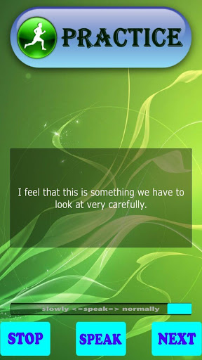 Feature SPEAK FLUENTLY will allow you practice English speaking with any vocabulary (pronunciation) and sentences you want. Just type or paste your own vocabulary or sentences and let the application help you speak them correctly.