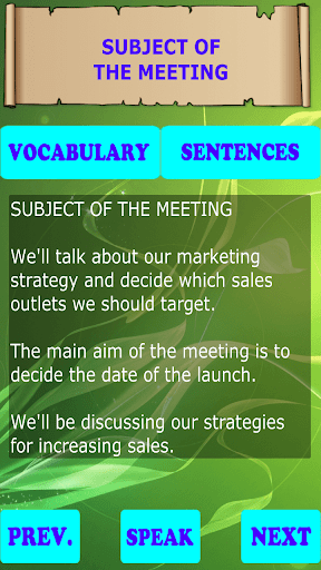 This app is not only to help you quickly learn English for meetings, but also to help you have a good preparation for successful business meetings.