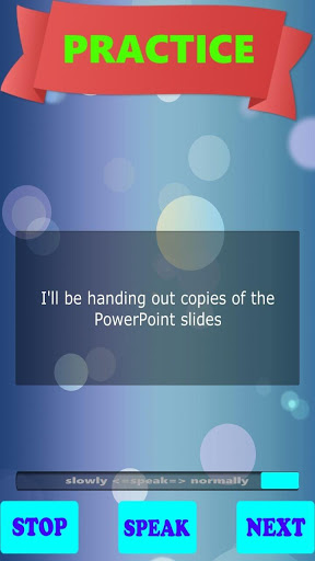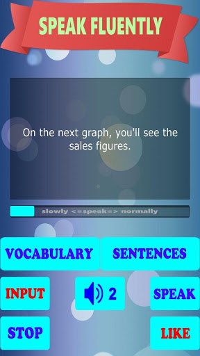 Feature SPEAK FLUENTLY will allow you practice speaking with any vocabulary (pronunciation) and sentences you want. Just type or paste your own vocabulary or sentences and let the application help you speak them correctly.