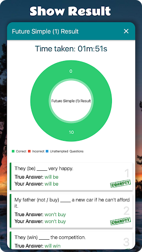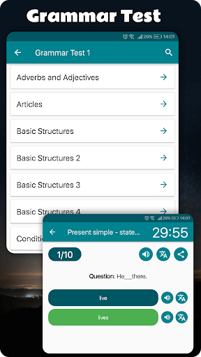 Grammar English app is developed to improve your English grammar accuracy. Work through the practice tests will help in expanding your knowledge and challenge your mature in common grammar rules.