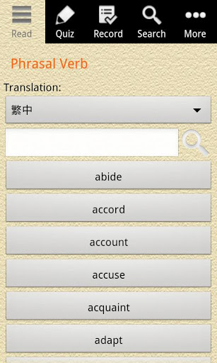 ★ QUICK search: 630 phrasal verbs usage with Chinese translation can be searched easily!