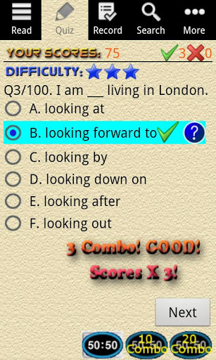 ★ CONVENIENT design for revision: During the quiz game, you can choose to display the details of the phrasal verb related to question you just answered. Moreover, you can create your own phrasal verb list so that you can do revision on what you have learned much more easily!