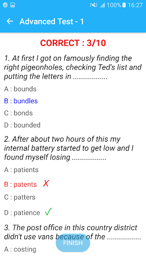 English Grammar Test helps you learn English grammar for TOEFL, GSET, IELTS, TOEIC, FCE or CAE tests by practicing interactive grammar exercises on your smartphone or tablet (beginner advanced level). English Grammar Test contains many grammar lessons explaining the grammar topics via articles, test, flashcards and learning games