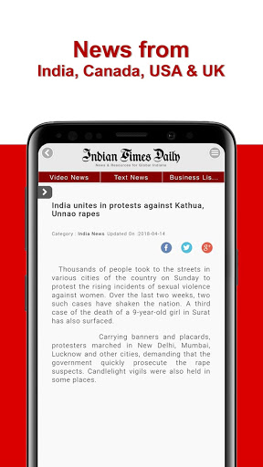 Indian Times Daily gets you top news in English, Hindi, Punjabi And Gujarati languages, from India, Canada, U.S.A, Punjab, and Gujarat with Business Listing of Local Indian stores and businesses. The user can also post his news/message to reach the entire Indo-Canadian community.