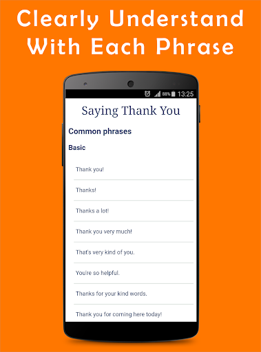 This app is also a English phrasebook for you. It collect many ways in simple formal or informal English phrases to express yourself effectively.