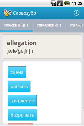 The application consists of a vocabulary and exercises for testing the acquired knowledge. The way of work is very simple: a word that is offered for studying is displayed on a screen. If a user knows it, he/she presses the button "I know" and moves on to the next one. If the word is not familiar to him/her, he/she presses "I don`t know", and transcription and translation appear on the screen. The application also provides an opportunity to listen to the pronunciation of words, and exclude from training those words that have been learned before. After studying, you can do exercises to check your knowledge. In such a way you can learn words in both directions: English-Russian and Russian-English.