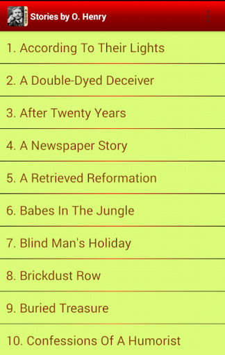 O. Henry is one of the most famous writer of short stories. His stories are well known throughout the world; noted for their witticism, clever wordplay, and unexpected "twist" endings. This application collects 200 short stories of him for you to enjoy. Install it and have reading fun whenever you have free time. Listed below are some of famous ones: