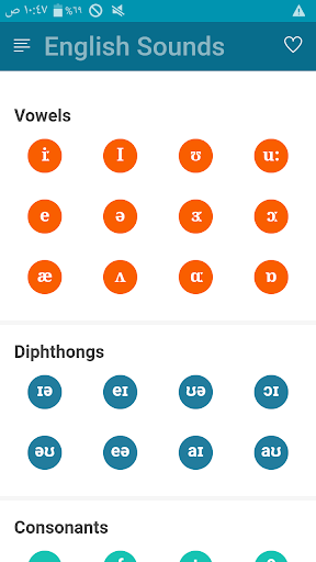 You can find in this application 3 types of phonemes as a chart with symbols and examples to listen to and practice: