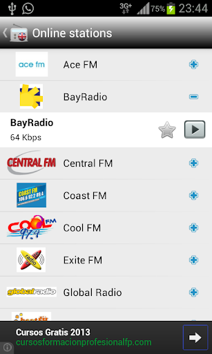 The application includes the following radio stations: