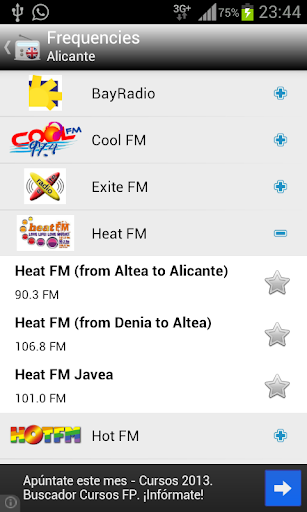 This appication includes english radio stations that broadcast in Spain.