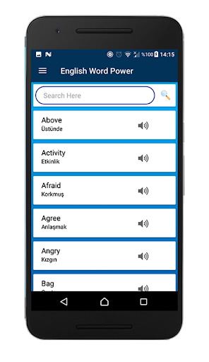 İngilizce kelime öğrenme uygulamasıdır. Ekrana çıkan İngilizce kelimelerin Türkçe karşılıklarının bulunup işaretleneceği istenirse kelimenin telaffuzunun dinlenebileceği ve bunun sonucunda bir skor ve sıralama elde edebileceğiniz bir mobil uygulamadır.