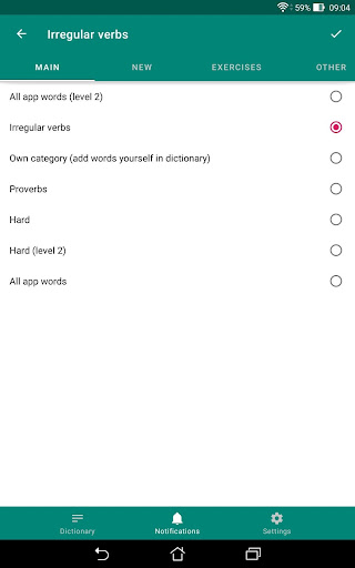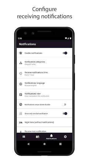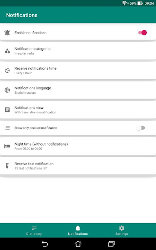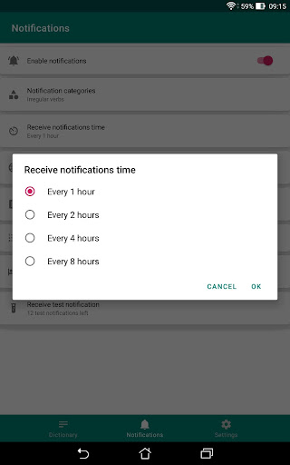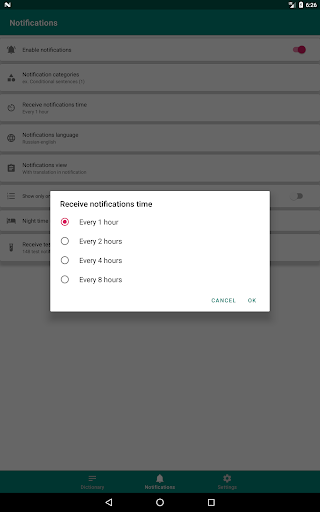 You can set the period of receiving notifications with foreign words in the application between 30 minutes and 8 hours.