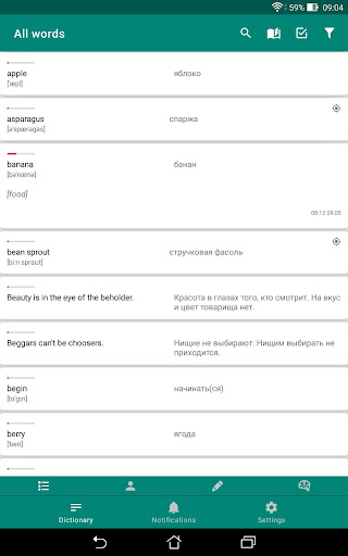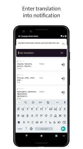 Fill your own dictionary in any language and receive words via notifications with translation input.