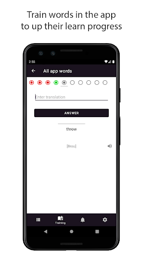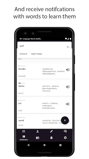 There are two notification buttons: "I know" and "I don't know". You can input translation of the received word right into notification and if it isn't true you will see notification with translation.