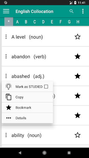 - Bookmark feature to mark and review collocations.