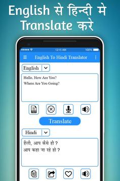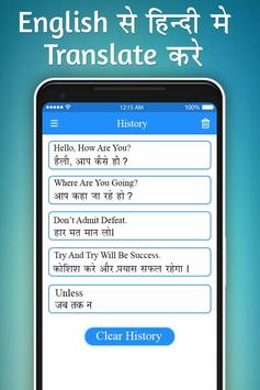 English to Hindi Translator is a FREE application to help you translate from English into Hindi or from Hindi into English.Learning English has never been so easy with the all new English Hindi Dictionary and the English Hindi Translation (हिन्दी अंग्रेजी डिक्शनरी or हिन्दी अंग्रेजी शब्दकोश). With features like Word and Sentence of the day, Scan to Translate, Word Game, Chat Head and more, this Hindi English Translator & English Hindi Dictionary app is sure to make communication a lot more easy and fun.
