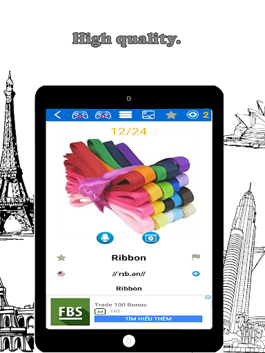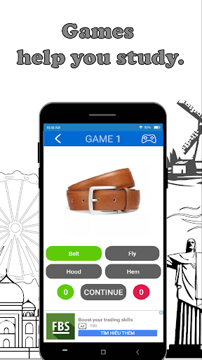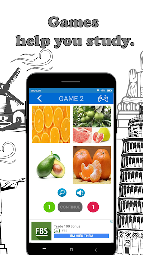 Beside learning, the application provides game for you to play for learning, it's multiple choice with 3 type, letter sorting to make word, word writing with hints and pairing game.
