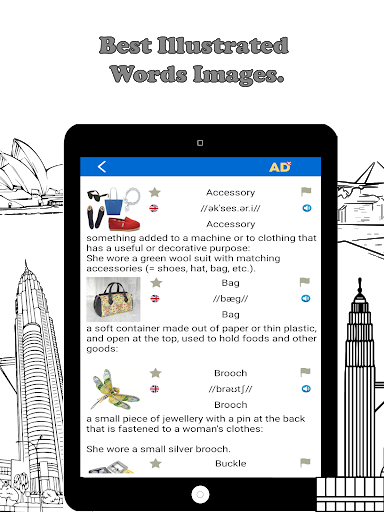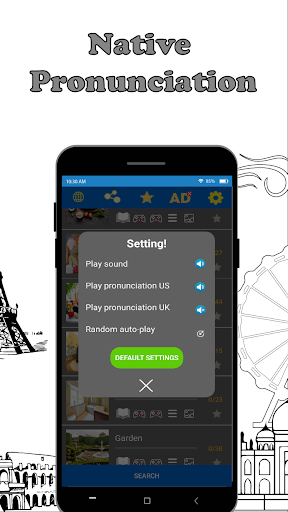 The application provide you learning so you can try to learn vocabulary by seeing the images and combine with text, pronunciation by US or UK sound, and the meaning and examples.