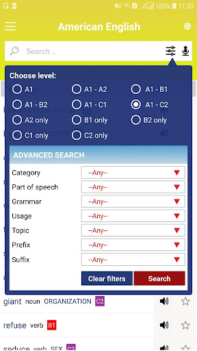 This interactive app features a comprehensive English Vocabulary Profile - American complete with word.