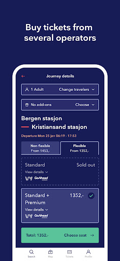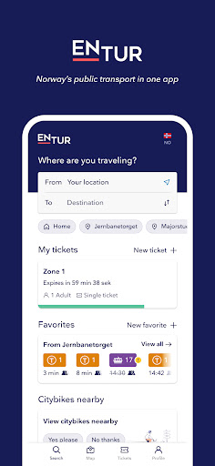 The app makes it easy for you to travel with public transport wherever you are in Norway.