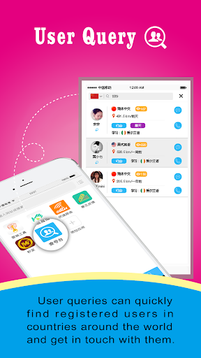 The built-in user inquiry function can search for information of registered users including account number, hobbies and business scope according to the country, and find friends with the same hobbies or ideal partners.