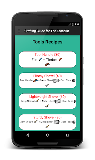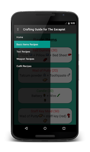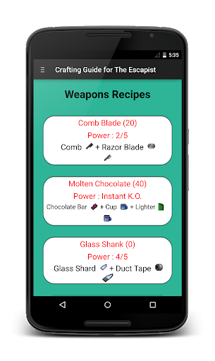 This app provides a guide for crafting items in The Escapists. All crafting notes are included and more tips and tricks will be added in future.