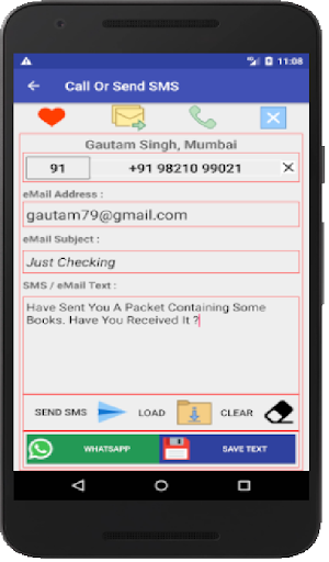 ESCORT Uses A Common Screen for Phone, SMS, eMail & Whatsapp. Message Texts Can Be Saved and Recalled For Future Use. A Whole Section Deals With Message Texts.