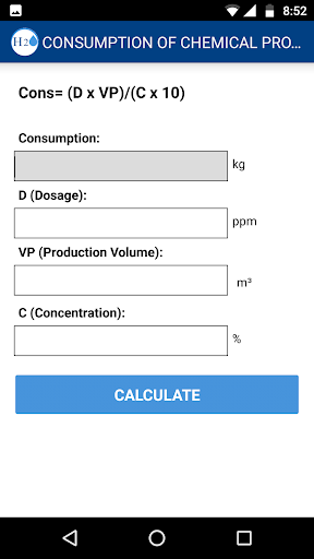 Calculate consumption of chemical product