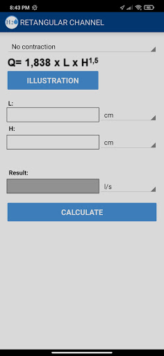 Calculate water flow by retangular channel