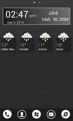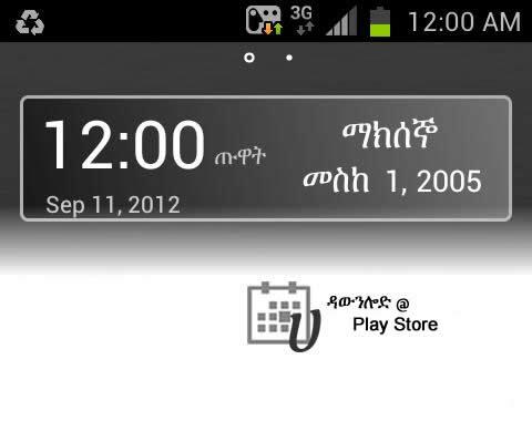 EthioCalendar (ኢትዮ-ዘመን አቆጣጠር) is a simple Ethiopian calendar widget. It shows the current day and time in Amharic (Ge'ez) characters. If you were looking for a simple way to know the current date in Ethiopia have EthioCalendar at hand in your Home screen, this widget is for you.