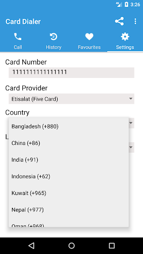 Now you can simply call someone directly from your contacts than having to dial the card number again and again. Call to India, Pakistan, Bangladesh, Sri Lanka, Nepal, Indonesia, China, Philipines and Across GCC !!