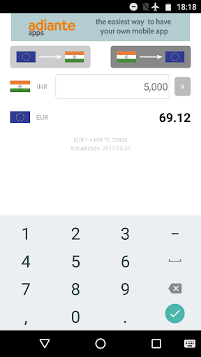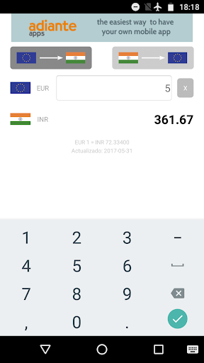 Exchange rate is kept updated (do not worry if you do not have Internet, it will use the exchange rate of the last time it was updated).