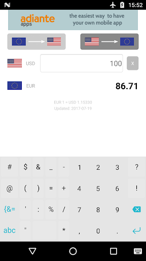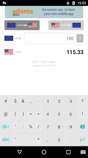 Exchange rate is kept updated (do not worry if you do not have Internet, it will use the exchange rate of the last time it was updated).