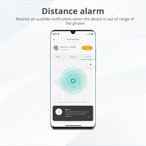 ✔ Alert - your phone rings when an object with notiOne tracker get out of reach of Bluetooth signal (maximum 90 m)